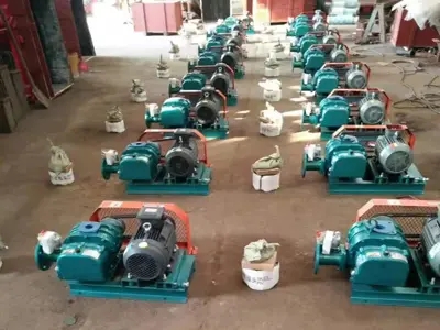 工作原理:电机通过v型带带动鼓风机,使吸入的空气通过一对三叶型叶轮的回转从排气口排出。